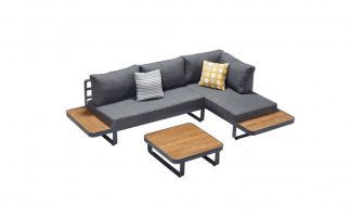 CARRIBEAN è caratterizzato dalla semplice combinazione di due mini-salotti e un tavolino da caffè. I pannelli in textilene e il legno di teak donano all’intera collezione uno stile moderno da vivere all’aria aperta ideale per le giovani generazioni.