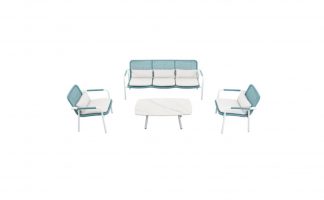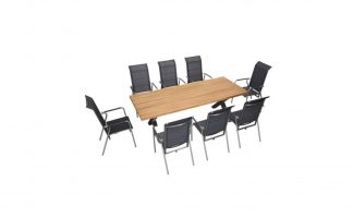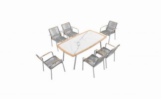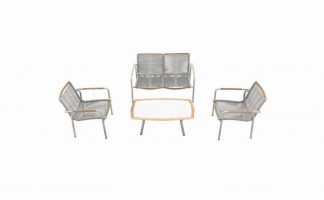La linea PIONEER è costruita in acciaio inossidabile spazzolato con intarsi in teak burma, l’effetto corda (confort con armatura elastica) rende questa collezione unica.