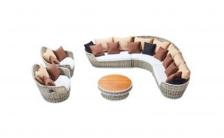 Le forme di questa collezione si ispirano alla navicella spaziale cinese, con una modularitá reinterpretata che crea comode strutture abitative all’aperto. La tipologia della struttura interna in alluminio con effetto curvo offre un senso di protezione, oltre a creare un’estetica visiva molto raffinata. Il telaio in alluminio offre una struttura robusta e sicura. Il vimini sintetico intrecciato di alta qualità offre una solida struttura che consente di avere un prodotto molto resistente in esterno. La possibilità di impilare gli elementi in un unica unità rende questa collezione, quando non è in uso, attraente dal punto di vista estetico e pratica perchè puó essere stoccata all’esterno in spazio ridotto e comodamente trasportata.